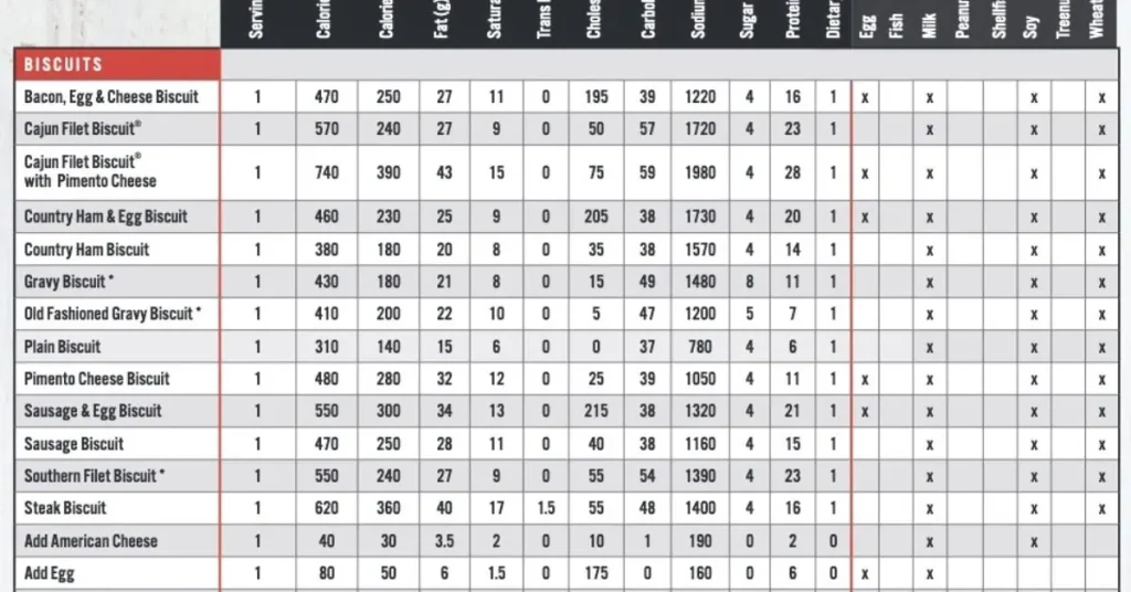 Want a better overview of Bojangles’ Biscuit Calories? Use the table below to scan them quickly.